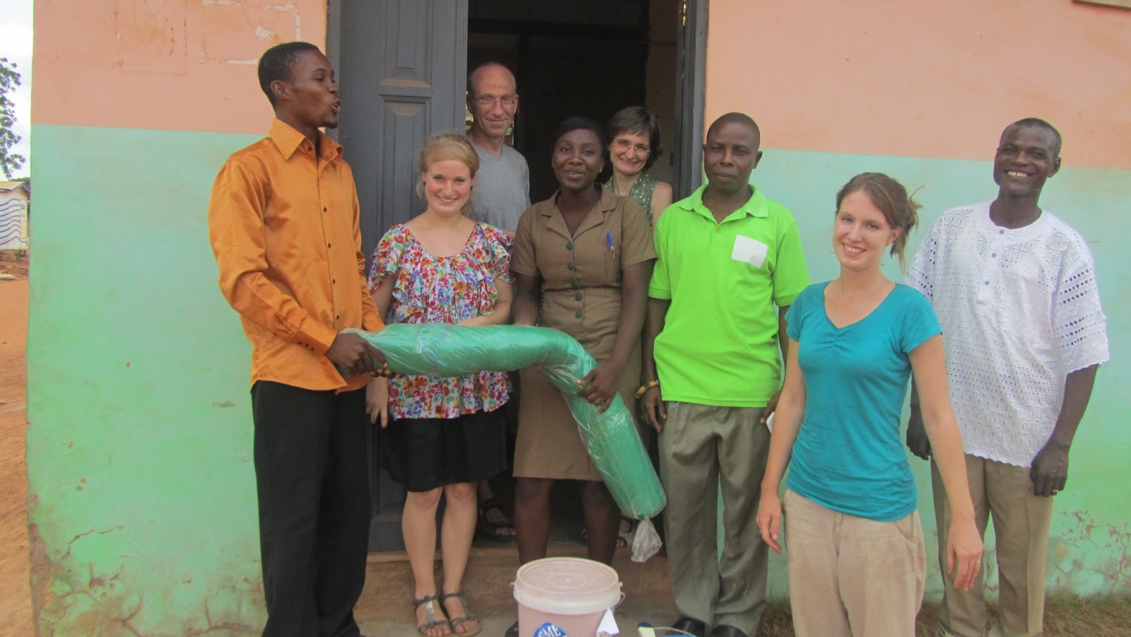 TANF gave a total of 4 buckets of paint, for both the inside and the outside of the health centre, as well as two large bundles of net, to line all the windows to prevent mosquitoes. 2 large paintbrushes were also bought, along with 5 lightbulbs that had also been removed – previously, the health centre really did have nothing, so was impossible to use.